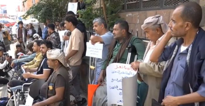 تعز ..وقفة احتجاجية لجرحى القوات الحكومية للمطالبة بصرف مستحقاتهم المتأخرة