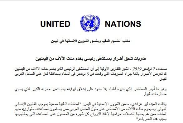 الأمم المتحدة تدين استهداف مليشيات الحوثي لمستشفى أطباء بلاحدود بالمخا