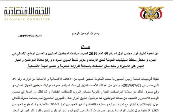 اللجنة الاقتصادية تحذر التجار من الانصياع لمليشيات الحوثي