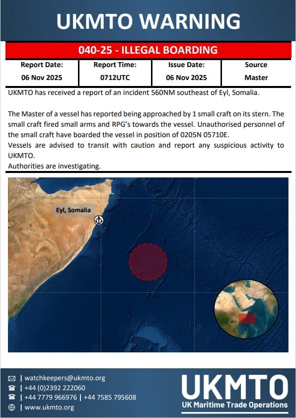 التجارة البحرية البريطانية: سفينة تبلغ عن تعرضها لمحاولة قرصنة بالقرب من السواحل الصومالية