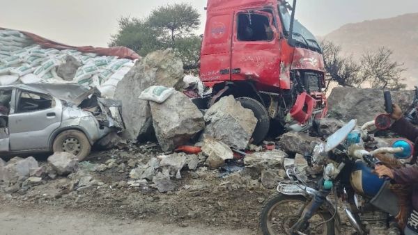 ذمار : انهيارات صخرية تسفر عن وفيات وأضرار في السيارات