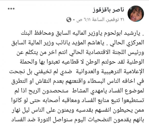 باقزقوز يتهم الميلشيات بتحويل”الوطن” إلى إقطاعية خاصة