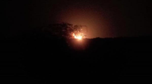 حريق هائل في شاحنات كانت في طريقها لمليشيات الحوثي بحيس