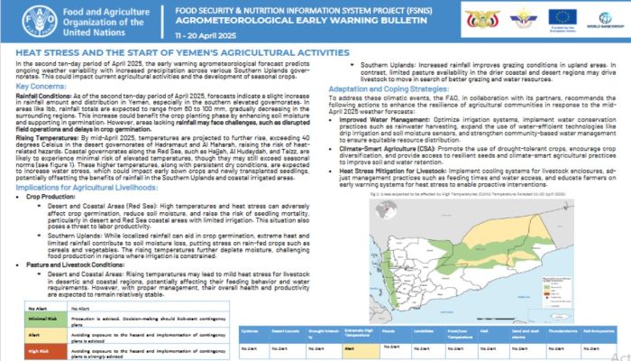 AGROMETEOROLOGICAL EARLY WARNING: HEAT STRESS AND THE START OF YEMEN'S AGRICULTURAL ACTIVITIES
