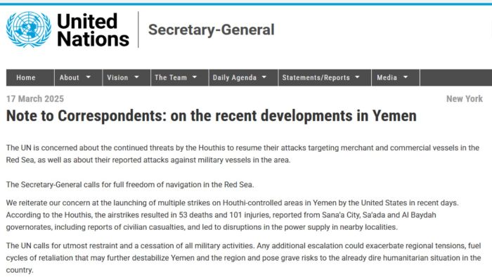 UN calls for “utmost restraint and a cessation of all military activities” in Yemen