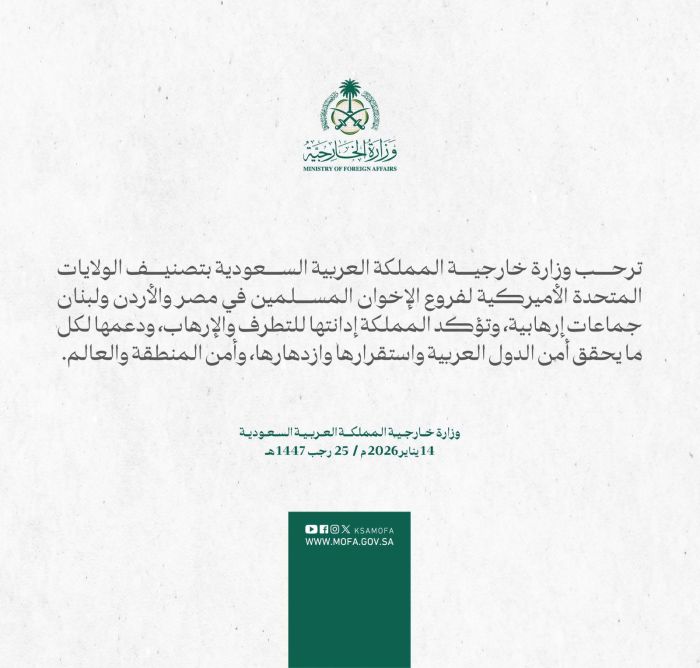 السعودية ترحب بتصنيف الولايات المتحدة لفروع "الإخوان المسلمين" في مصر والأردن ولبنان كجماعات إرهابية