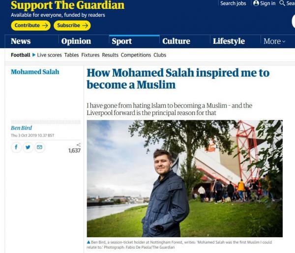 صلاح يتسبب في تحول إنجليزي "يكره المسلمين" إلى مسلم