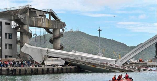 حادث مخيف.. انهار الجسر فهوت شاحنة النفط فوق القوارب