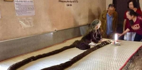 يتلوى مثل الثعبان.. عجوز لم تقص شعرها منذ 64 عاما