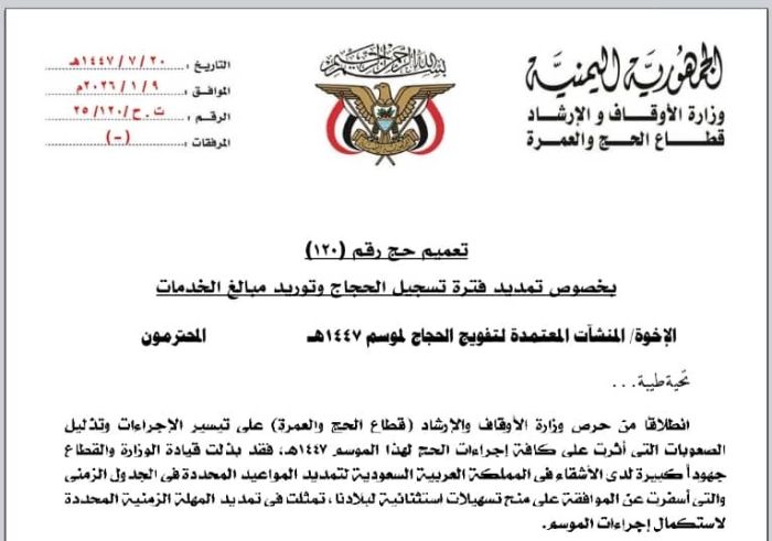 الأوقاف تمدد تسجيل الحجاج اليمنيين حتى 10 رمضان وسط تحذيرات من السماسرة ومطالبات بفتح منفذ الطوال