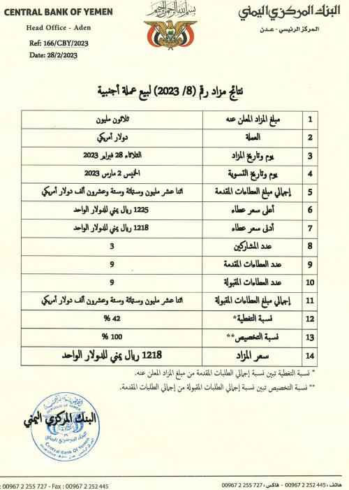 البنك المركزي يعلن نتائج مزاد بسعر أقل قبل وصول الوديعة السعودية