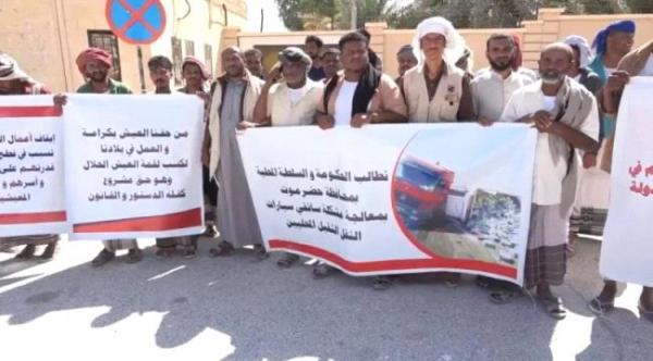 وقفة احتجاجية في سيئون لمالكي شاحنات نقل البضائع