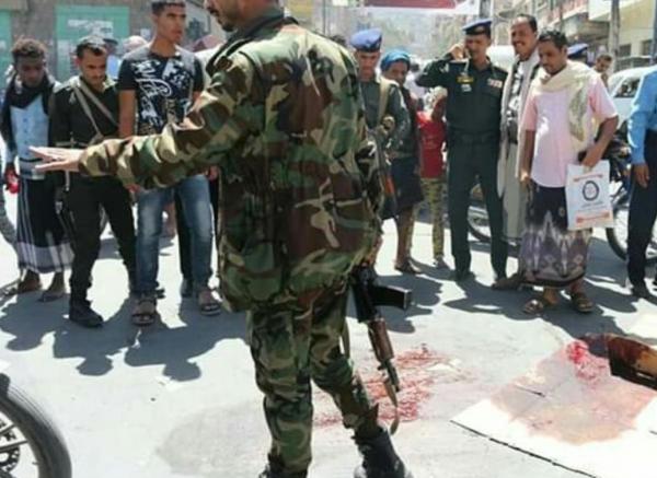 وأفادت مصادر أمنية أن المواطن عبد الله سيف الشرعبي قُتل ظهر اليوم أمام مستشفى البريهي في منطقة بئر باشا غربي تعز.