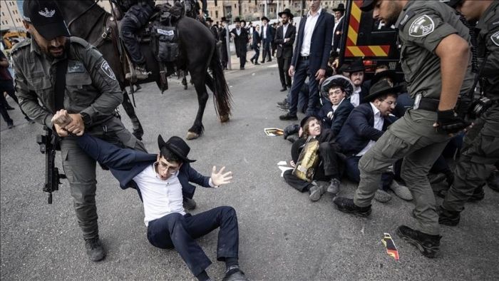 وذكرت هيئة البث الإسرائيلية أن المحتجين الحريديم الرافضين للتجنيد بالجيش الإسرائيلى اشتبكوا مع عناصر الشرطة ووصفوهم بـ"النازيين".