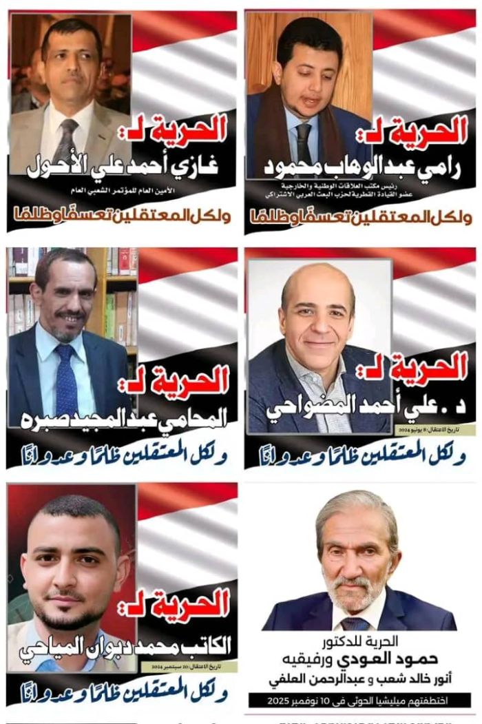 وافاد أنه يتابع بقلقٍ بالغ ما تشهده العاصمة صنعاء وبقية المحافظات من اعتقالات تعسفية واختطافات متكرّرة طالت عددًا من المفكرين والأكاديميين والسياسيين والناشطين المدنيين، في مقدمتهم الدكتور حمود العودي، والأستاذ عبدالرحمن العلفي، والأستاذ أنور شعب، أعضاء منتدى (دال) الثقافي، المعروفين بمواقفهم الفكرية التنويرية ودعوتهم الدائمة للحوار والسلام والتعايش، بالإضافة إلى اختطاف الأمين العام لحزب المؤتمر الشعبي العام غازي الاحول، وكذلك الدكتور رامي عبدالوهاب محمود، بالرغم من أنهم يعتبروا من رموز الوسطية والاعتدال في الوسط السياسي.
