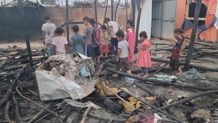 حريق يلتهم خمس خيام لنازحين في أبين بسبب ماس كهربائي