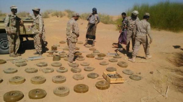 اتلاف 957 لغماً وعبوة ناسفة في مديرية خب والشعف بالجوف