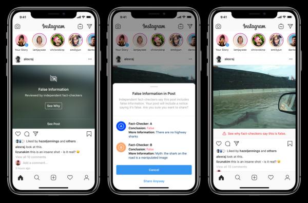 انستجرام سيخبرك إذا كان المحتوى المنشور من فيس بوك خاطئ أو مخالف
