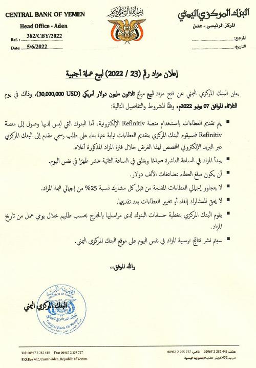 البنك المركزي يقر سعر المزاد الجديد لبيع الدولار بـ 1075 ريالاً للدولار الواحد