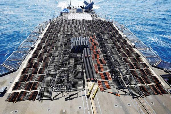 يذكر أن الأسطول الخامس بالبحرية الأميركية كان كشف أن طراد الصواريخ الموجهة “يو.إس.إس مونتيري” صادر شحنة أسلحة غير قانونية من مركب شراعي مجهول في المياه الدولية بشمال بحر العرب يوم السادس من مايو/أيار الجاري.