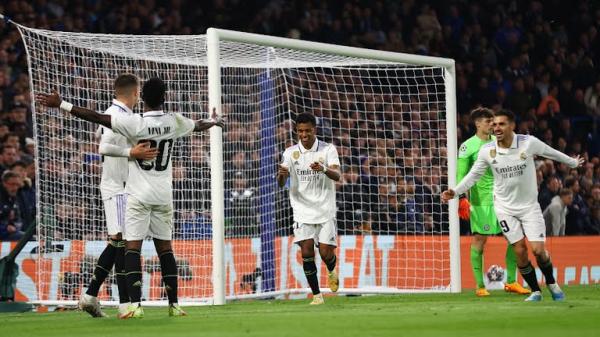 تأهل ريال مدريد الإسباني، إلى نصف نهائي دوري أبطال أوروبا، بعدما تفوق على تشيلسي الإنجليزي اليوم بهدفين نظيفين في إياب ربع نهائي المسابقة على ملعب "ستامفورد بريدج".