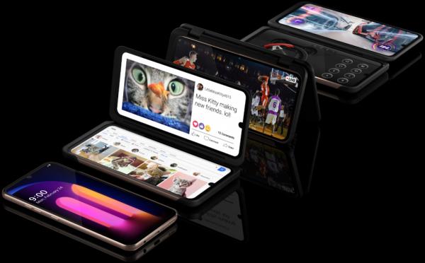 على الجهة الأخرى، فقد أضافت إل جي ميزة الشاشة المزدوجة لهاتفها بحيث يمكن وصل الهاتف مع شاشة مطابقة أخرى تحمل لانشر منفصل وواجهة منفصلة لتعدد الاستخدامات؛ مثل اللعب على واحدة وتشغيل الموسيقى على أخرى، أو متابعة فيلم ما والتصفح على الأخرى، وهو ما يمثل مفهوم مختلف عن الهواتف القابلة للطي. الشاشة الإضافية ستدير التطبيقات بشكل منفصل باستثناء تطبيقات جوجل مثل الخرائط التي يمكن التوسع للعمل مع الشاشتين معًا.